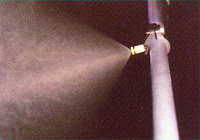 | It is desirable to spray ODC-50 in a droplet size of 10 Micron or less. By achieving this size droplet. We are able to create a fog or mist which will float in the air and combat maldour rising from an odour source. for outdoor use generally used pressure Nozzle System with nozzles having 2-3 feet intervals. A hollow bladed humidifan can be used for general deodorization in a factory type building. |